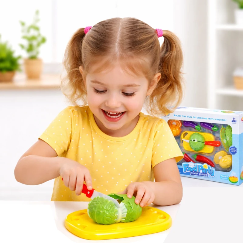 The Kids Cutting Vegetable Toy Set offers a fun and educational play experience that simulates a real kitchen environment in a safe way. This set is designed to help children learn through play, allowing them to cut toy vegetables using a child-safe plastic knife and a dedicated cutting board.