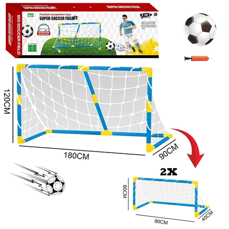 Bring the excitement of football indoors or outdoors with this Kids Football Goal Field 2-in-1 Set. This versatile playset can be used as one large goal or split into two smaller goals, providing flexible play options and hours of active fun. It helps children develop coordination and motor skills in a safe and enjoyable way while creating fun family moments between parents and children.