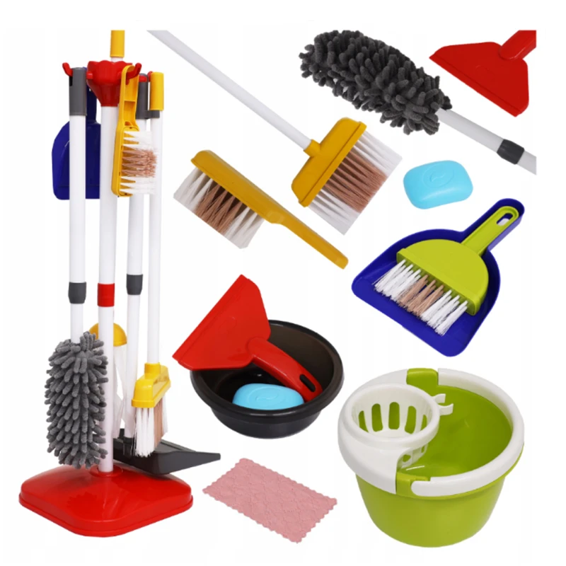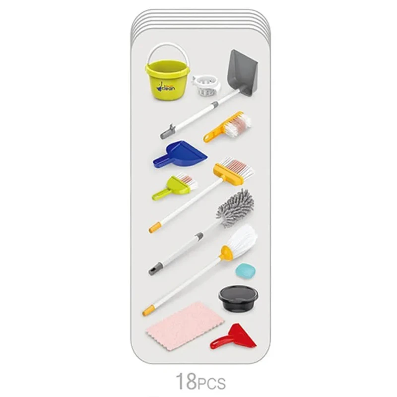 • Let your child explore responsibility, creativity, and imaginative role-play with the Little Helper 18-Piece Cleaning Toy Set. Designed to resemble real household cleaning tools, this adorable pretend-play kit includes a mini broom, mop, brush, dustpan, and additional accessories that make tidy-up time exciting.