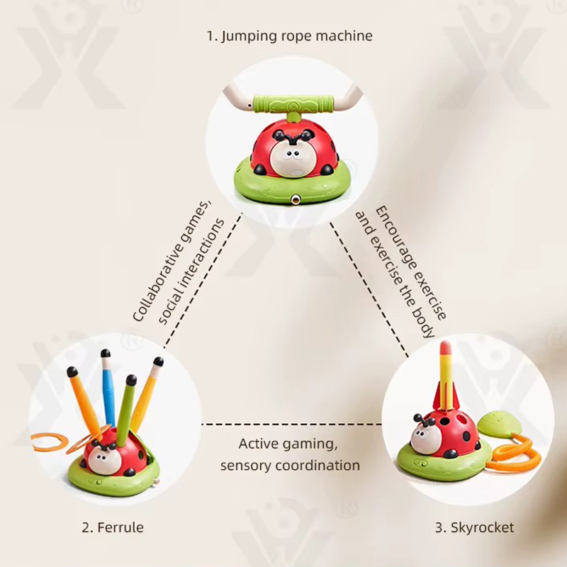 between jumping play, rocket launching, and ring toss. Designed for indoor and