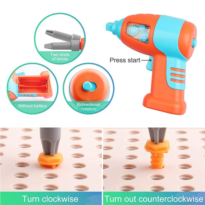 • Includes Two-Way Simulation Electric Drill and other Tools