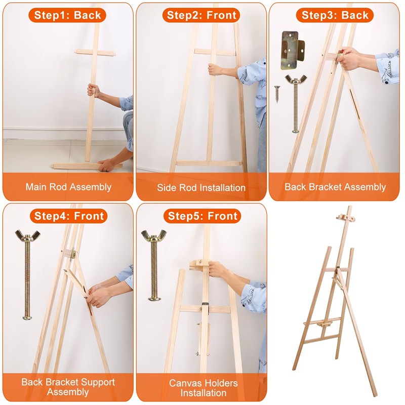 • Height: (150 cm) approximately, supports Canvases or Boards up to  (120 cm) approximately.