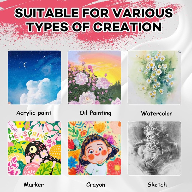 • The back of the canvas is made of acid-free, 3 mm thick recycled cardboard, which is environmentally friendly and lightweight, easy to transport and can be painted anywhere and anytime.