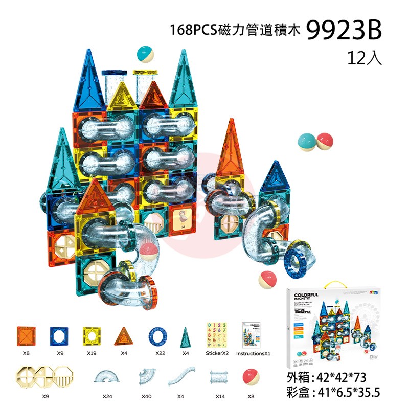 Colorful Magnetic Pipeline Building Blocks 168 Pieces (9923B)