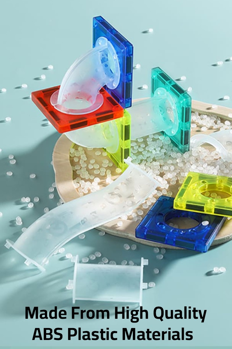 • The tubes are translucent and can also be opened up, allowing children to follow the marble as it rolls up and down the track. Children can also build into small 3D shapes to explore the endless possibilities.