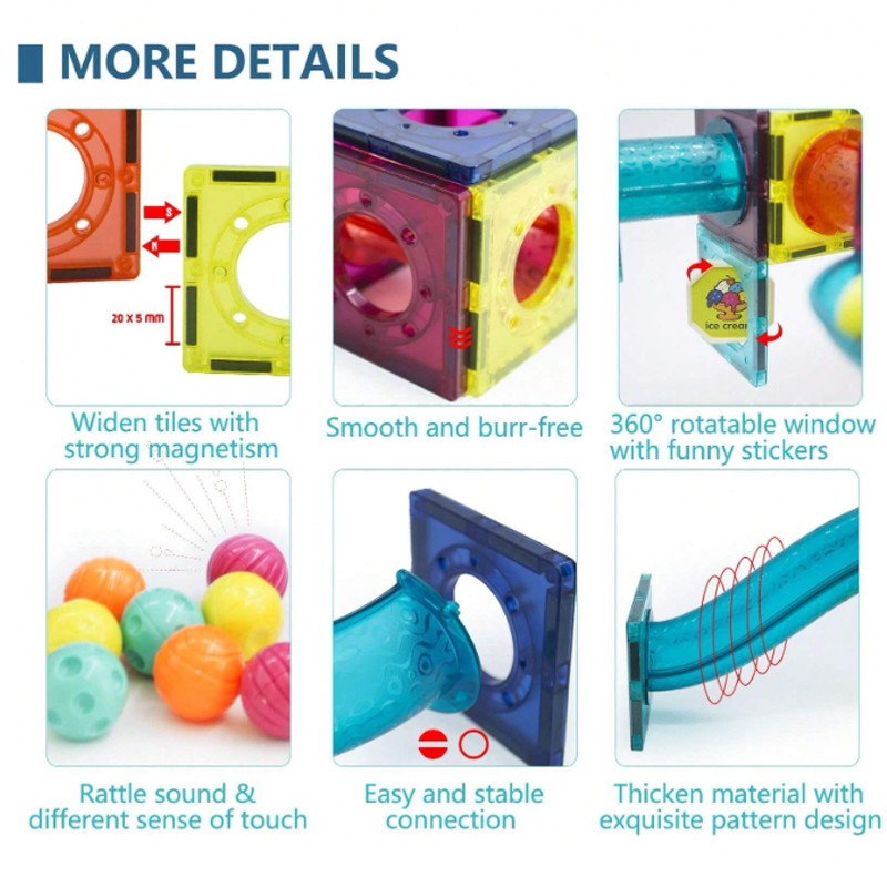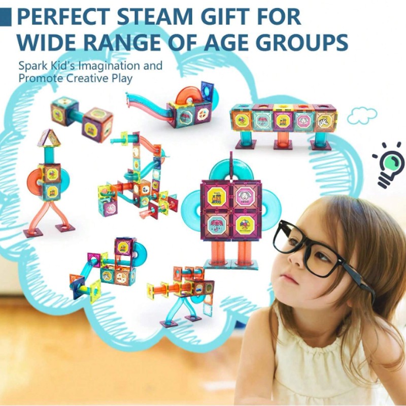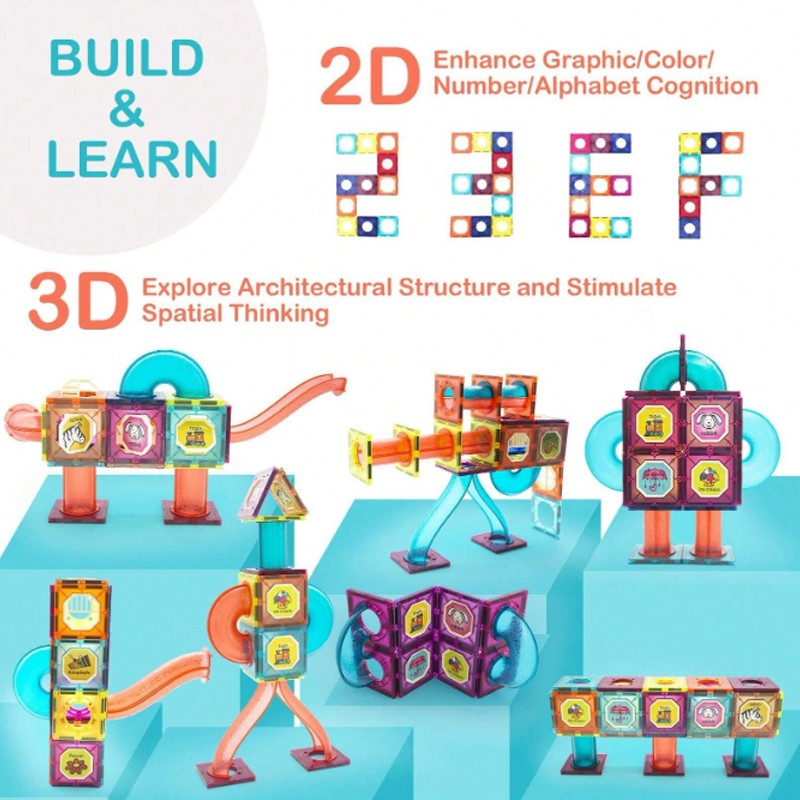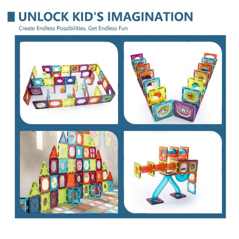• These magnetic colorful bricks in a variety of shapes give you endless possibilities to construct and create unique designs