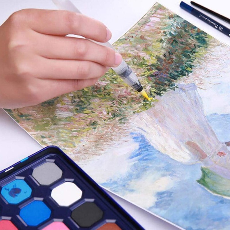 • 24 Solid water colors with 2 wood brush & a synthetic water brush.