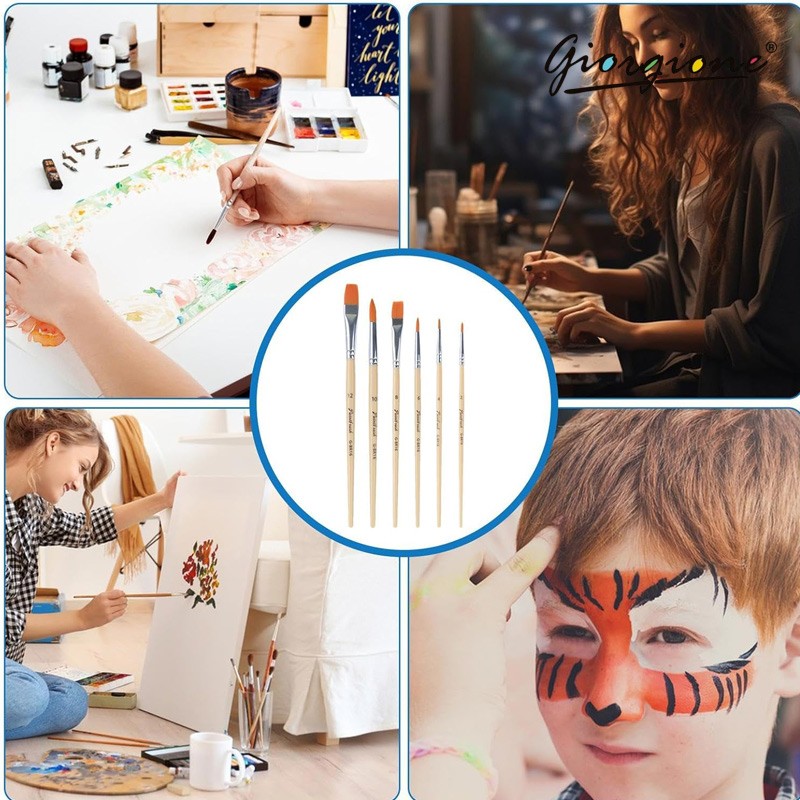 Giorgione Artist Paint Brush Set Of 6 Nylon Bristles Round & Flat Paint Brushes 2-4-6-8-10-12 (G-BR16)