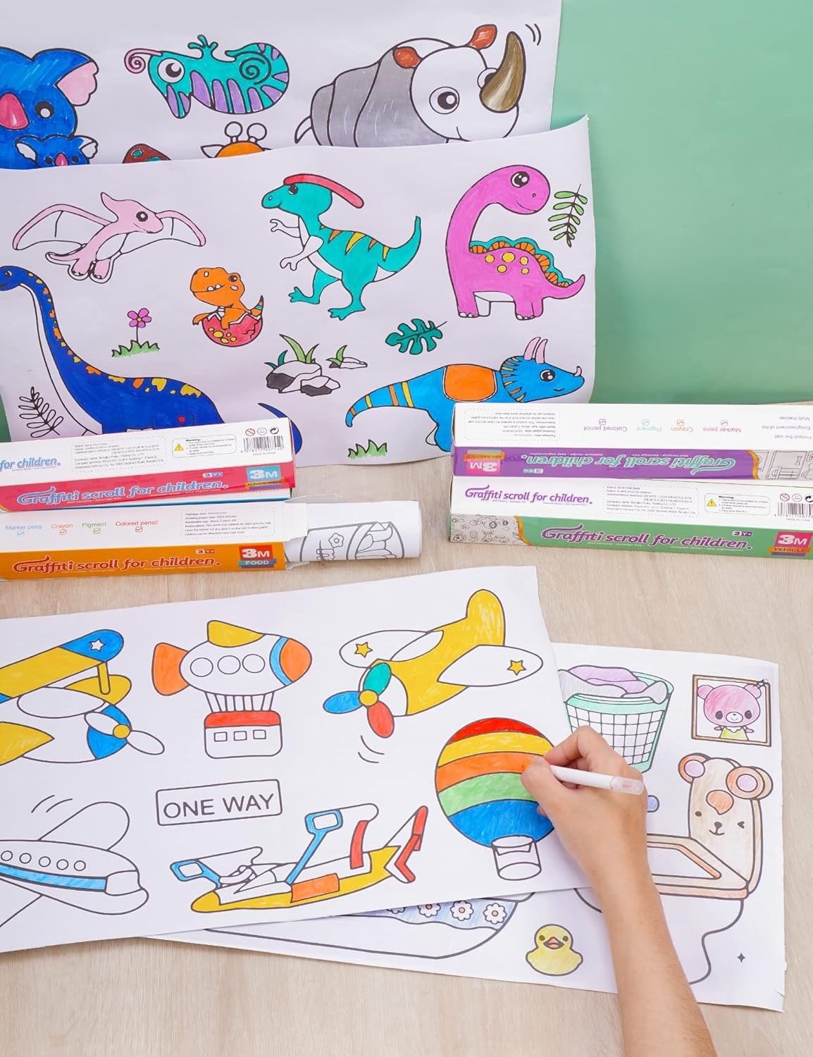 • Large coloring poster for kids, with a sticky design on the back, you can stick it on the floor, wall or tabletop to play with your friends! Adhesive back coloring rolls are easy to remove without damaging walls.