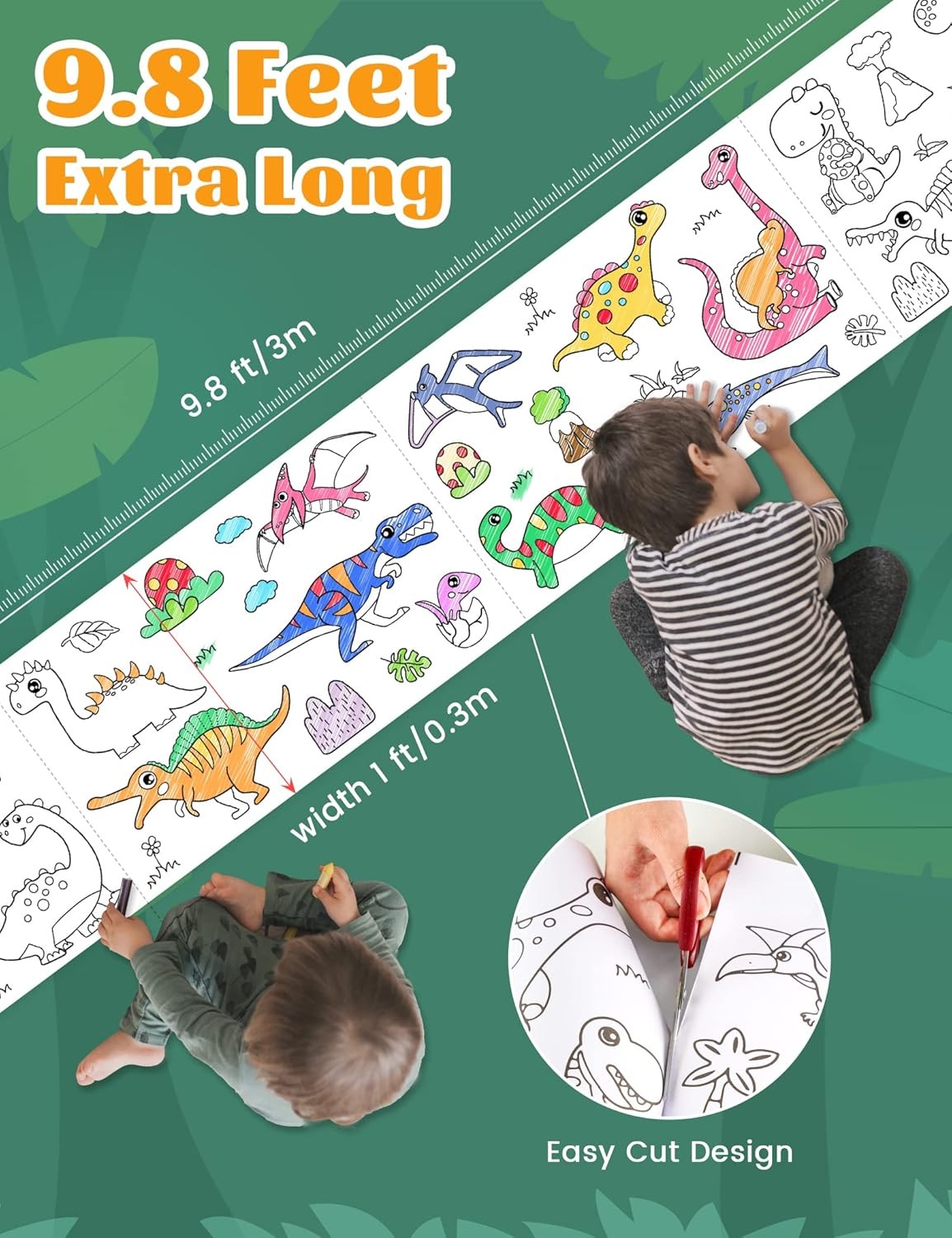 • Drawing roll is designed with easy-to-tear floss, easy to doodling in sections, you can experience this interesting drawing process with your family and friends.