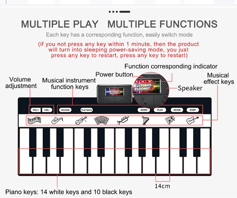• The non-woven fabric of kids piano mat is tasteless and non-toxic.