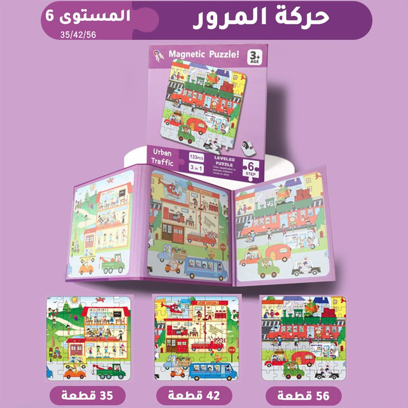 LEVELED Educational Magnetic Puzzles for Kids 133 Pcs Urban Traffic 3 In 1 (23036)