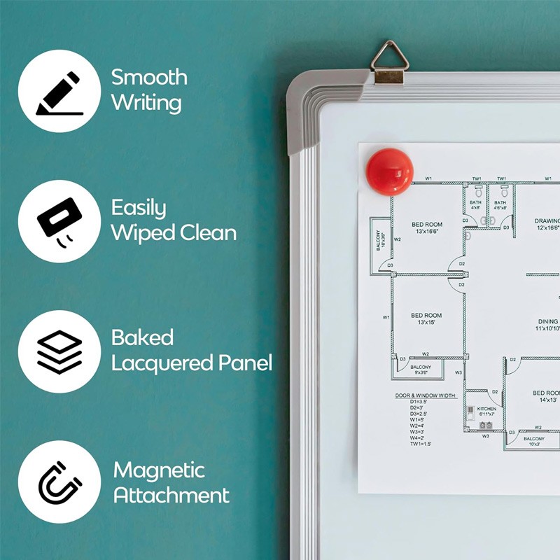 Magnetic Whiteboard Double side Aluminium Frame for Walls in Home Office & School Size (60 x 40 ) cm