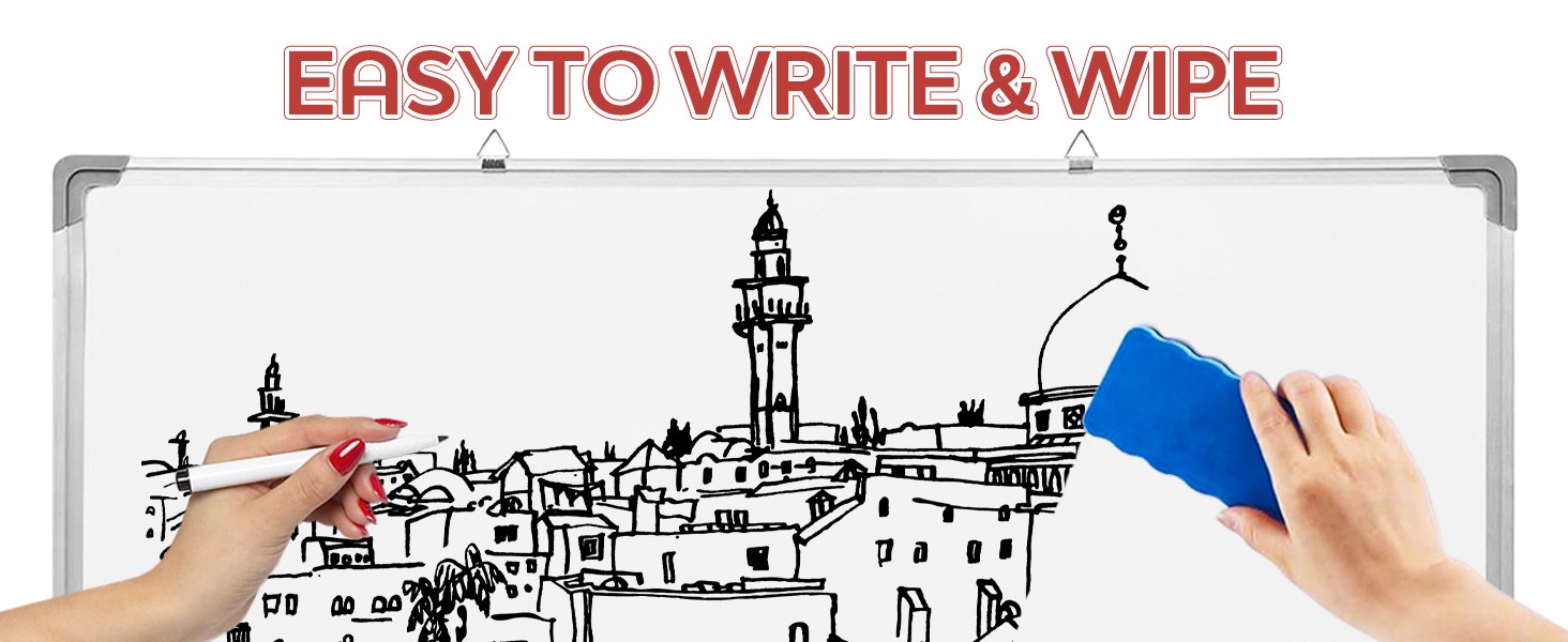• Crafted with a sleek aluminum frame, this whiteboard is not only durable but also adds a modern aesthetic to any room. It’s designed to withstand daily use while remaining lightweight and easy to mount.