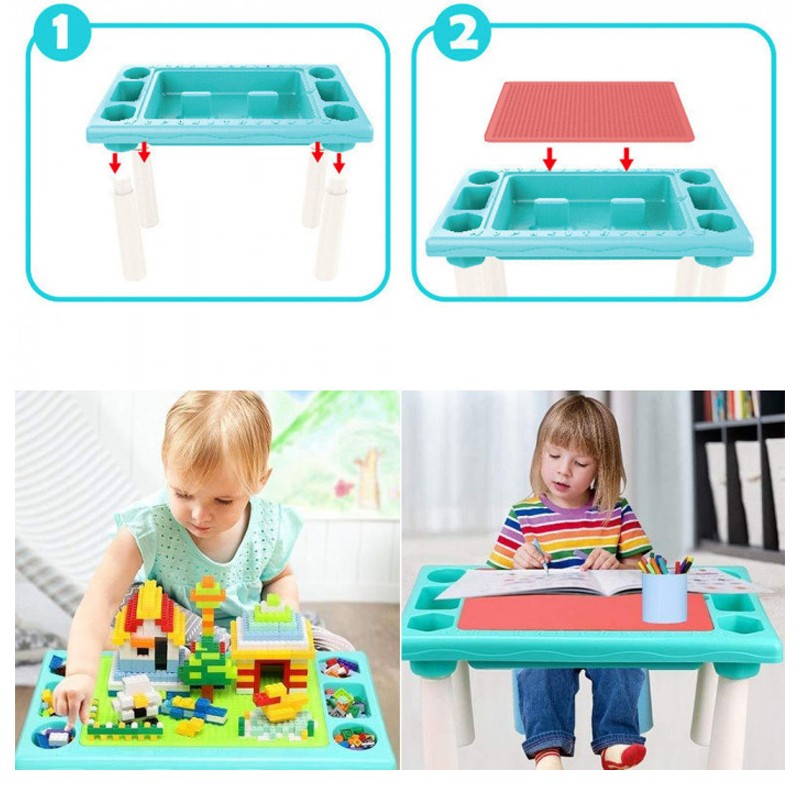 • On one side, the tabletop is intended for playing with a construction set, on which you can attach parts & build houses.