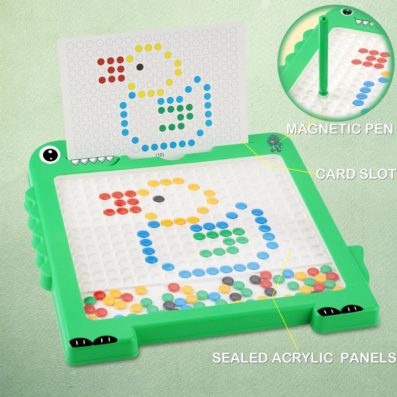 • Magnetic Beads Drawing Board contains 5 colors of beads that enable children to enhance color recognition while playing.