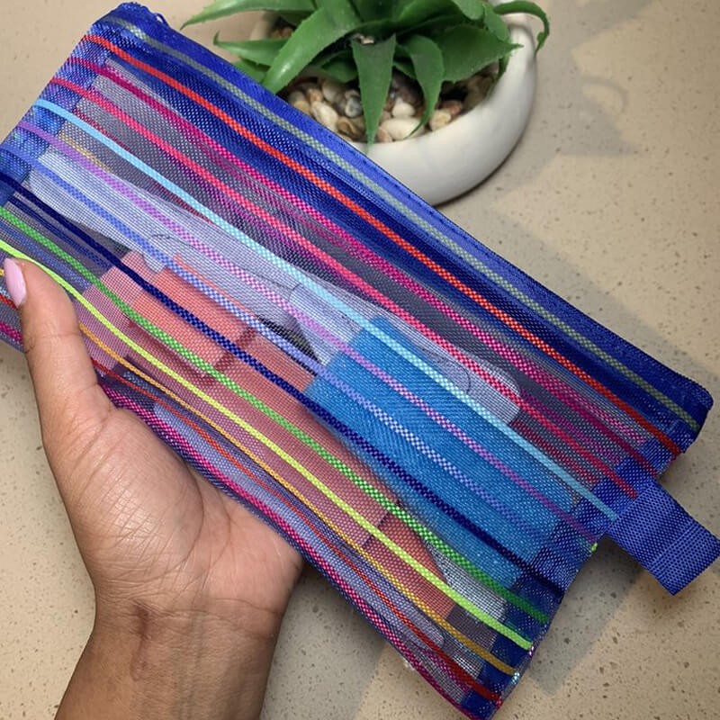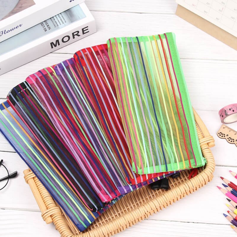 Rainbow Stripes Mesh Pencil Case Holder
