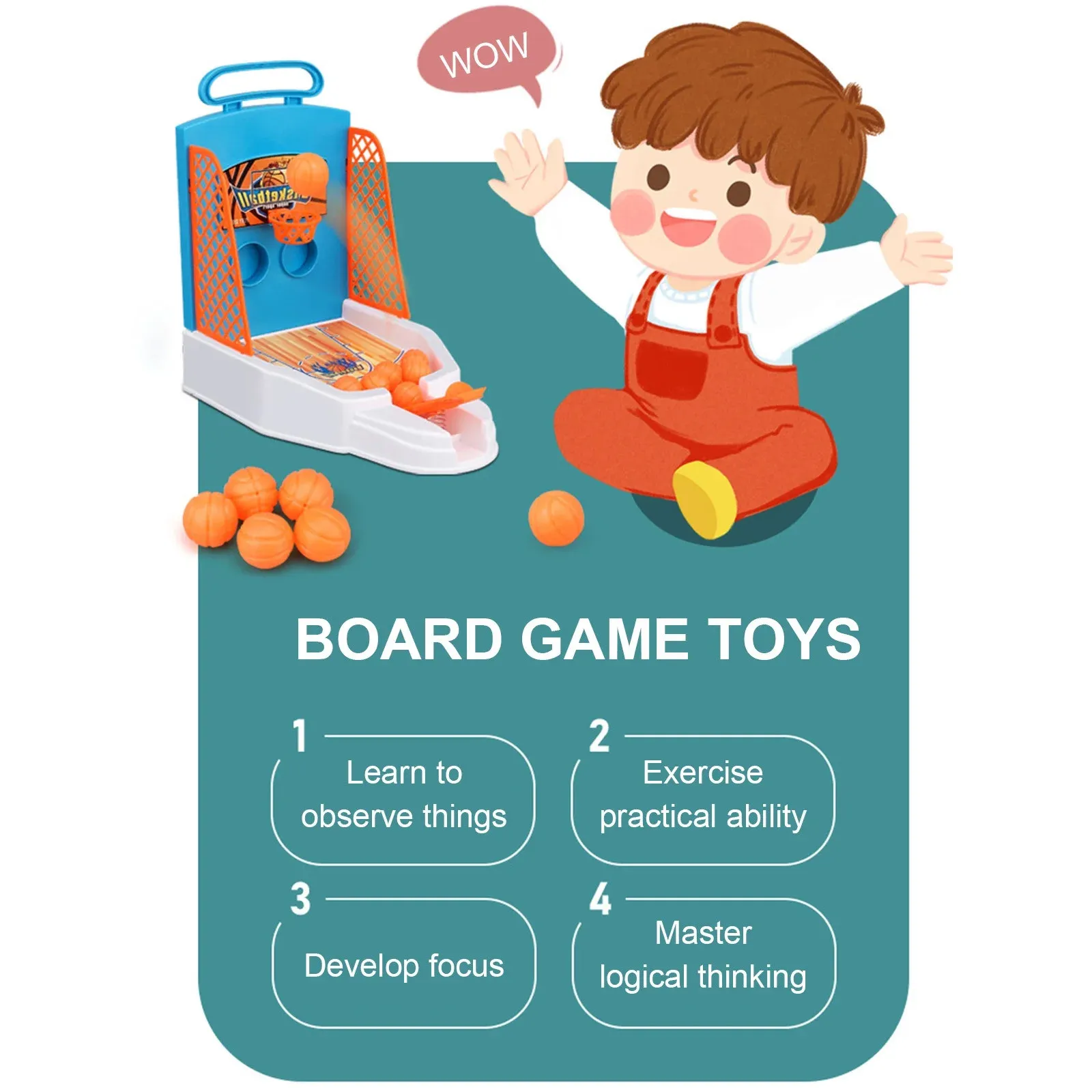 A fun and interactive table-top basketball game designed for kids and families. Lightweight, compact, and made from safe, environmentally friendly materials, it helps improve hand-eye coordination and encourages social interaction through competitive play. Perfect for family entertainment, birthday parties, and holiday gifts.