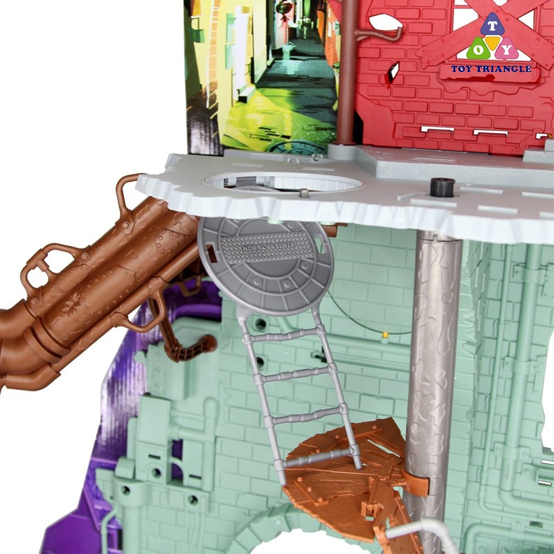 • Features include a zip line, spring loaded projectile, floors that fall out,  for the Turtles to practice their ninja skills and much, much more