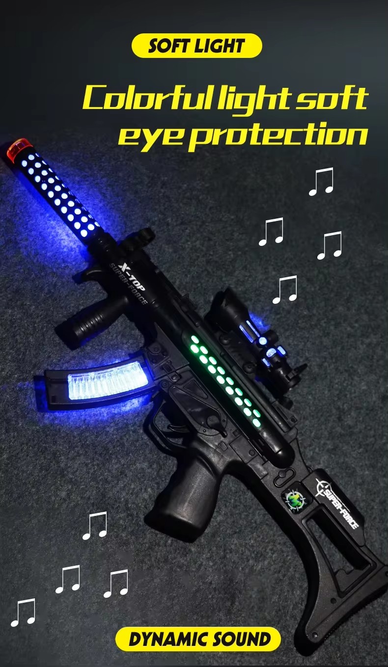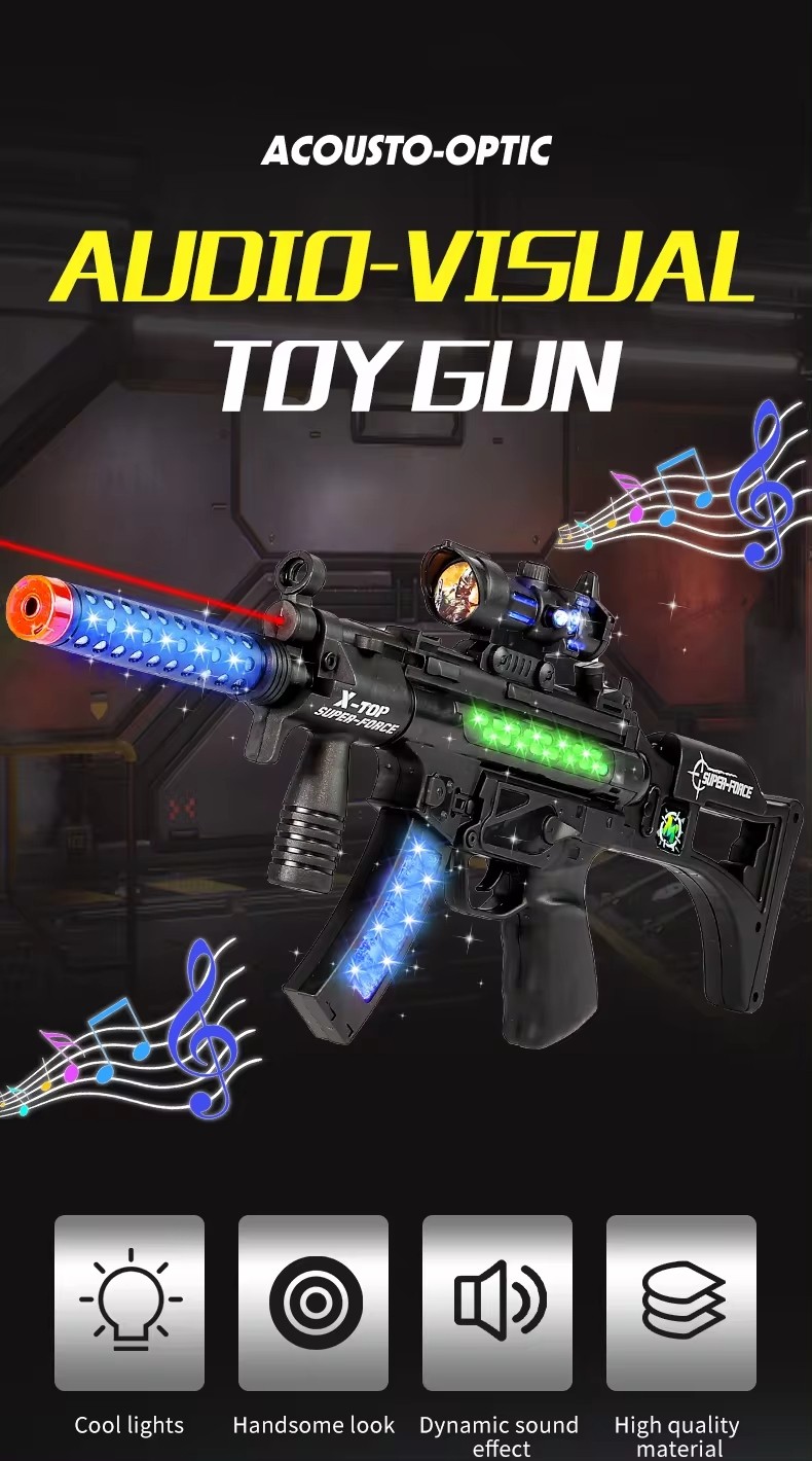 • This electronic toy machine gun contains cool led lights and cool simulated combat sound effects.