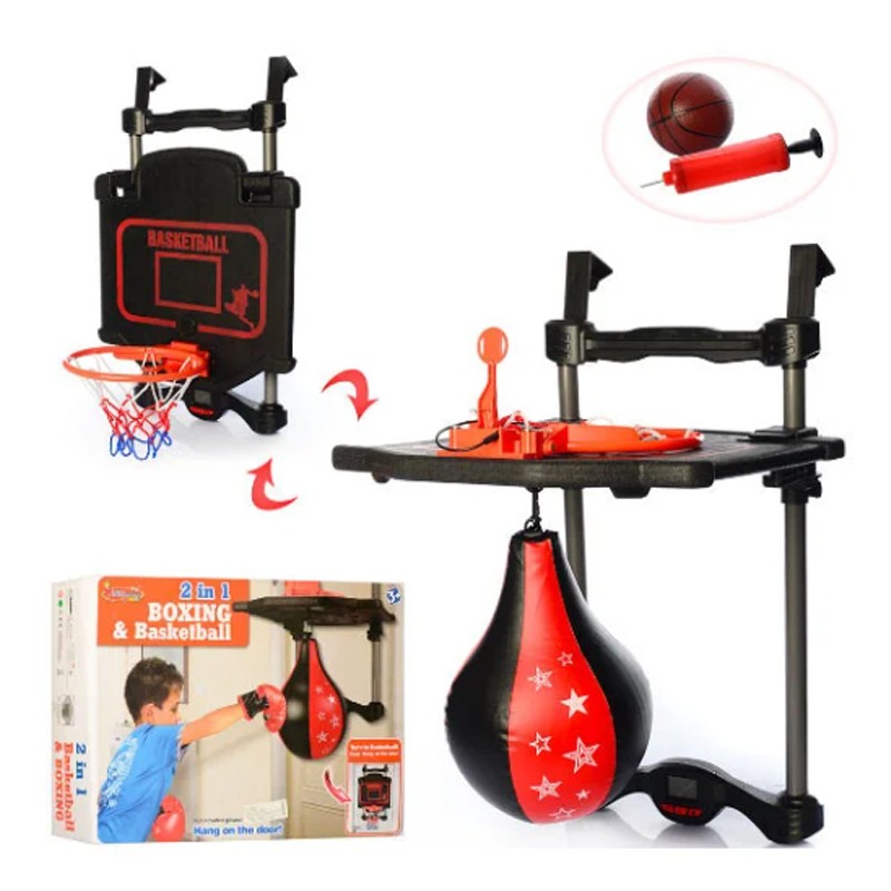 • 2-in-1 Adjustable Basketball & Boxing Set Features: