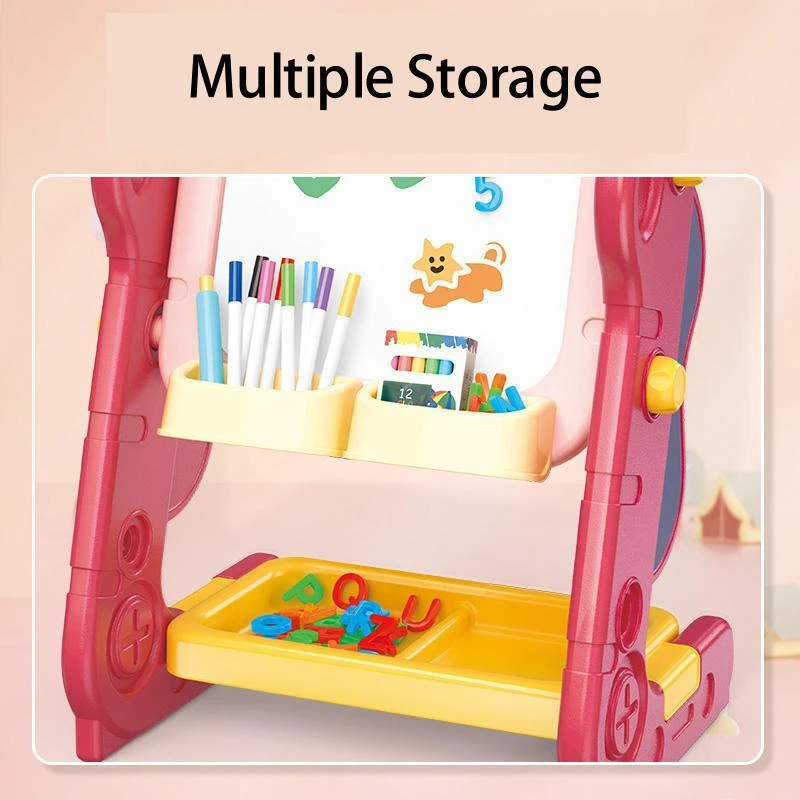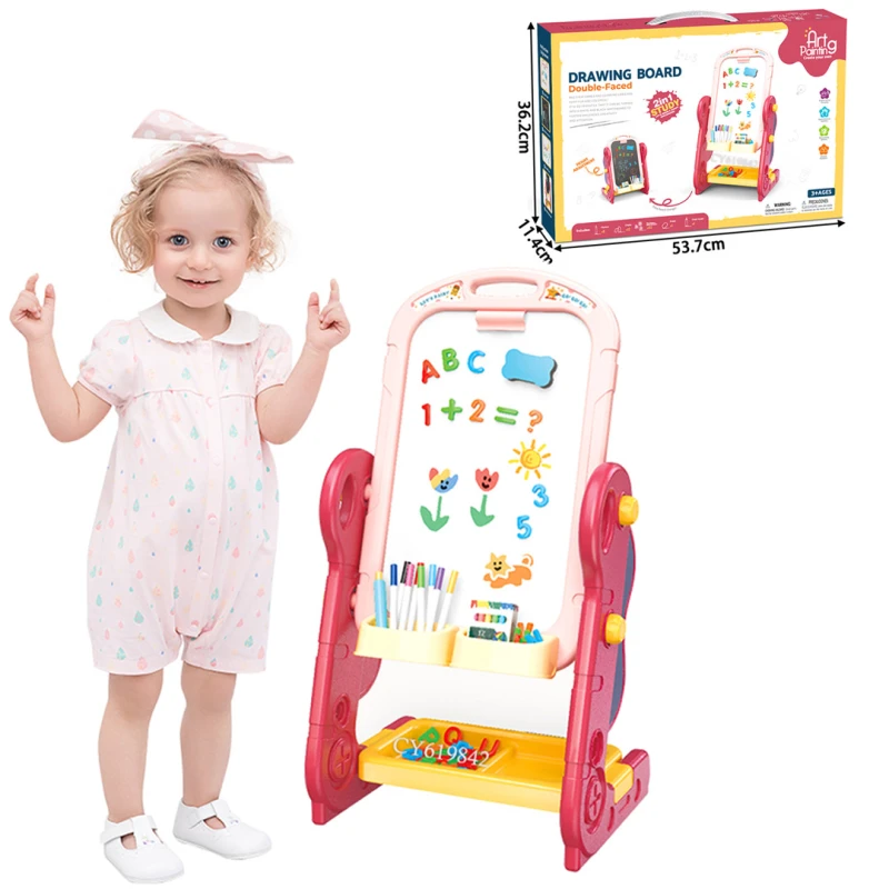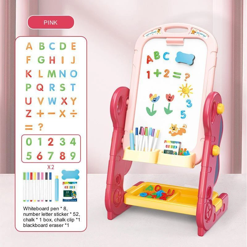 The Painting Art Force Double-Sided Draw Board is an innovative drawing board suitable for children aged 3 and up, offering a magnetic whiteboard on one side and a chalkboard on the other, giving kids endless creative possibilities with easy erasing and rewriting.