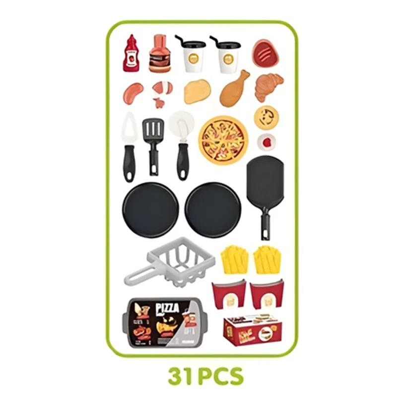Give your child a fun and educational play experience with this 29-piece cutting and assembly food play set, designed to enhance creativity and fine motor skills. The set includes food items that can be easily cut and reassembled, offering realistic pretend-play cooking with the included utensils.