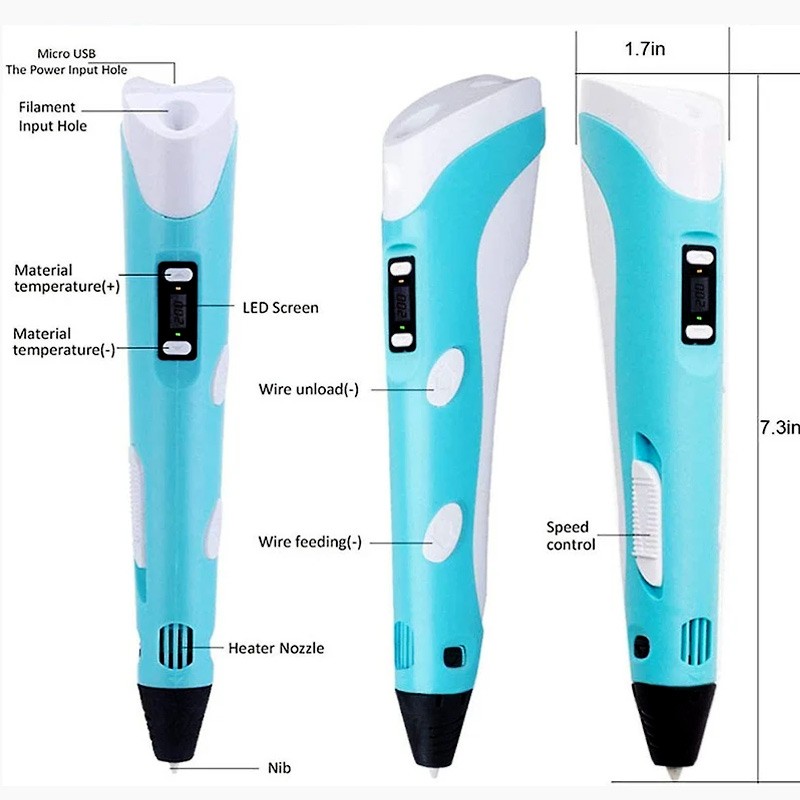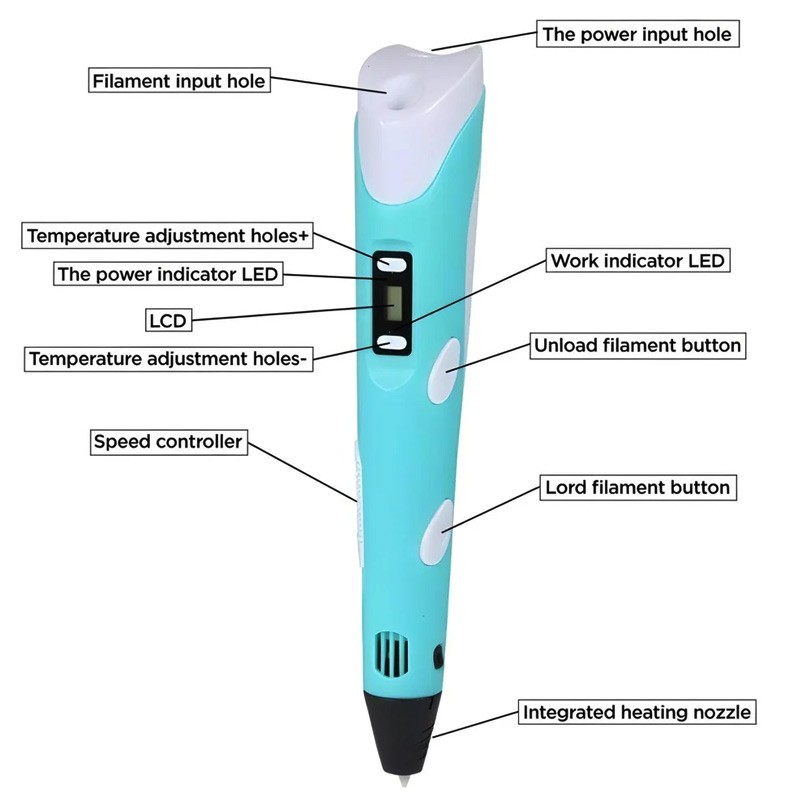 • Our 3D printing pen is temperature adjustable to suit several types of filaments: PLA (160-210 ℃, 320-410 ° F) or ABS (210-235 ℃, 410- 455 ° F).