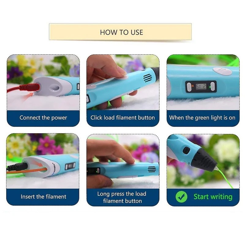 • The Set Includes : 1 x 3D pen-2 , 1 x Power cable ,1 x filament pack , 1 x 3D pen holder , 1 x Manual.