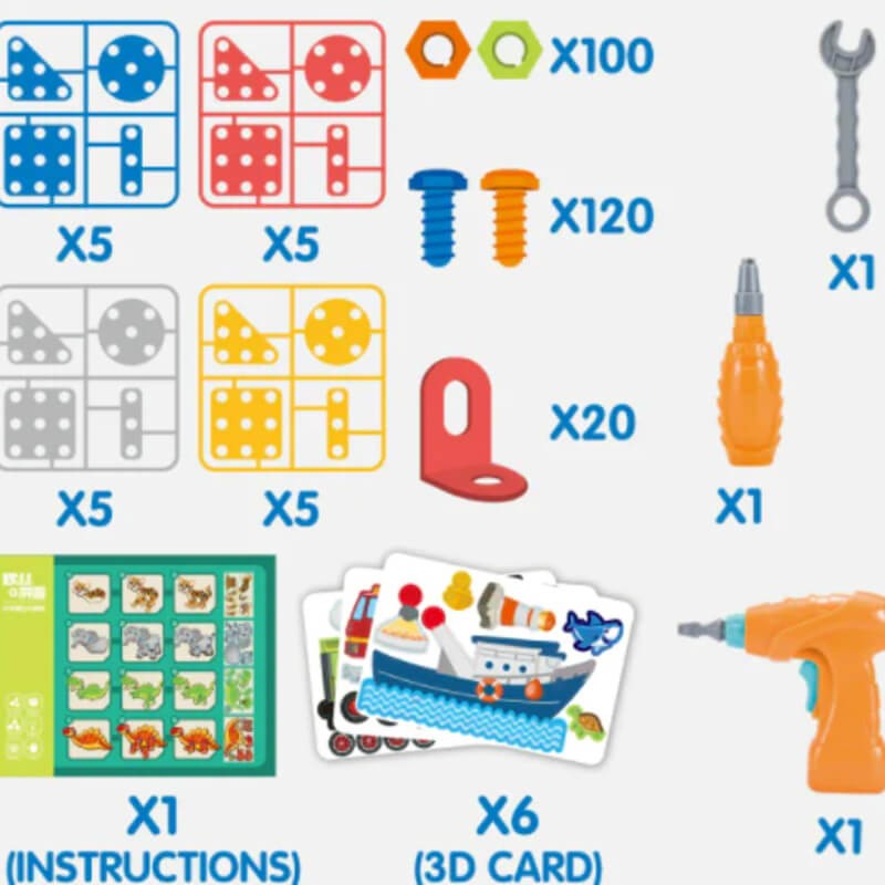• Includes Two-Way Simulation Electric Drill and other Tools