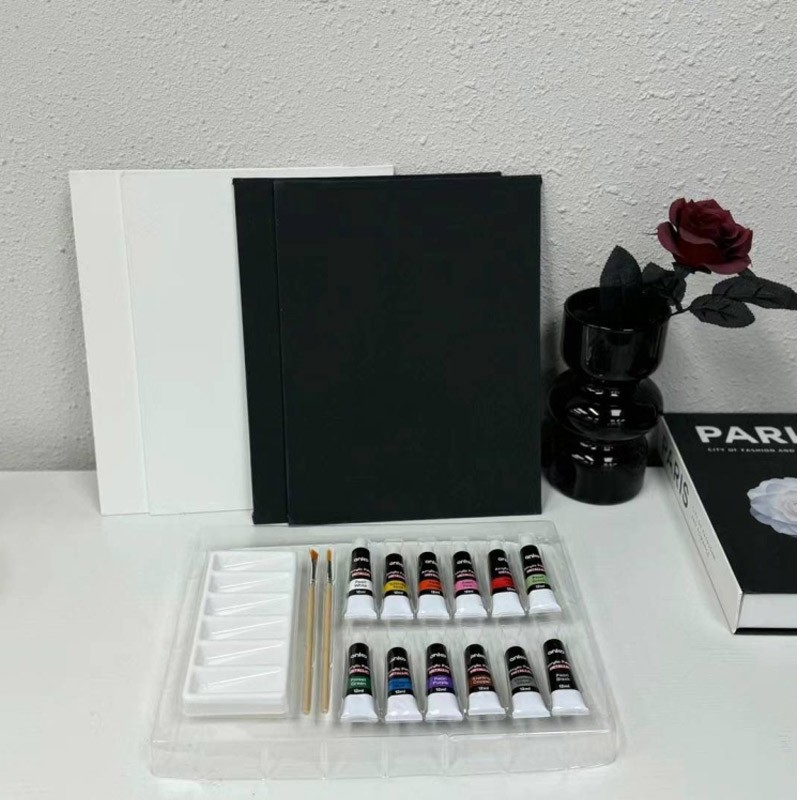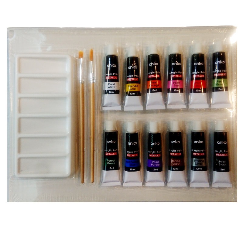 • 12 Metallic Acrylic Paints (12ml each): A rich selection of colors that bring your artwork to life with a stunning metallic finish.