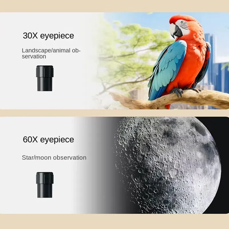 Two eyepieces (30X and 60X) for observing the moon, stars, planets, and distant