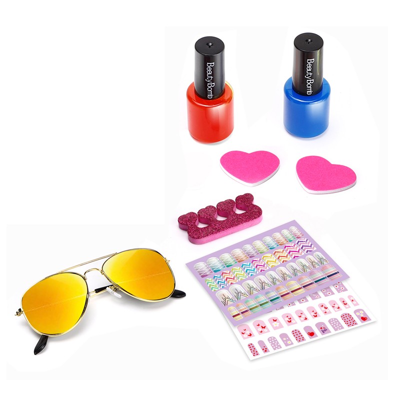 • Beauty Bomb Children Nial Set; Environmental Materials Used; Includes Fashionable Sun Glasses