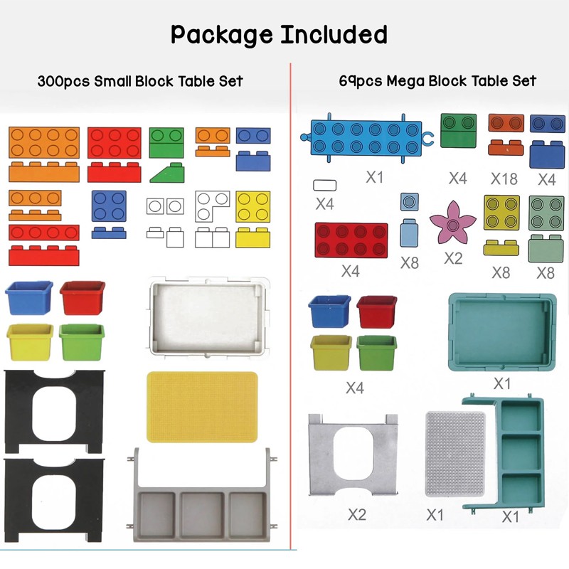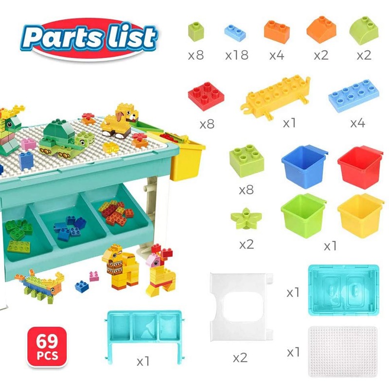 • 69 pcs of blocks to make different animals and structures.