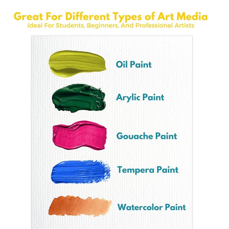 • ade of 100% cotton with gesso layer of primer to create an ideal paint surface that can retain color well and avoid paint from leaking from the back.
