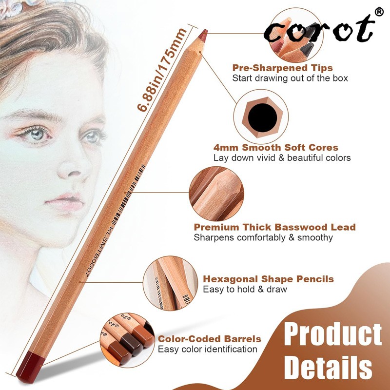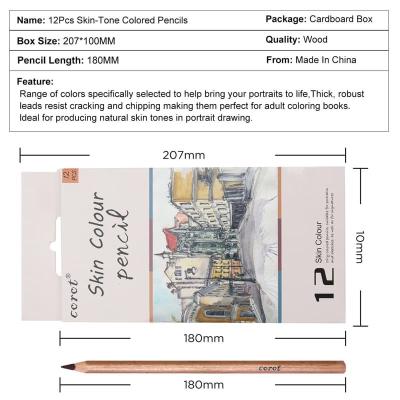 • 12 different skin and hair tone colored pencil set with a long-lasting and fade-resistant performances.
