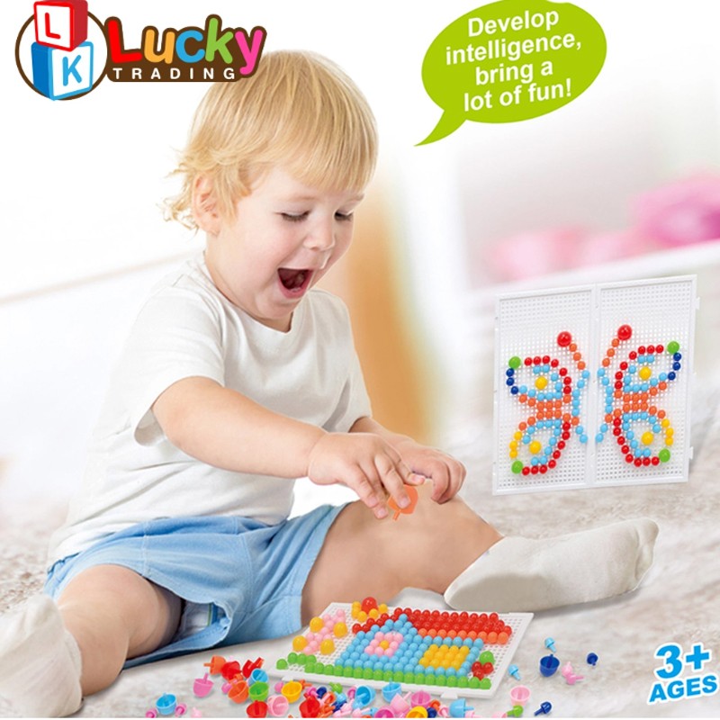 • This children's puzzle toy adopts a mushroom nail shape design.