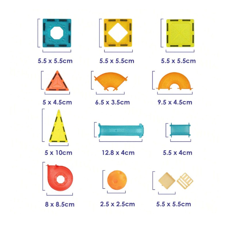 • These magnetic colorful bricks in a variety of shapes give you endless possibilities to construct and create unique designs