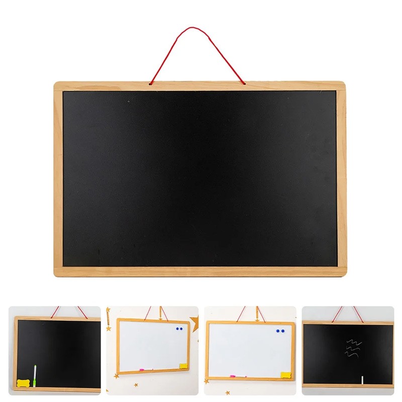 Double-Side Board Magnetic Board & Chalk Board Wood Fram SIze (40 x 30 ) cm