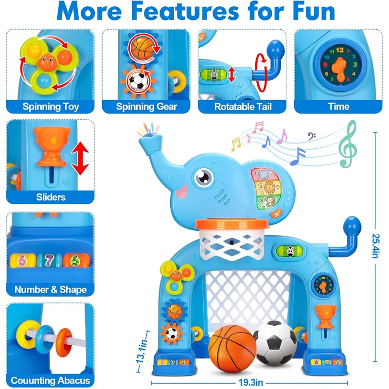 Elephant Sport Set , Toddler Basketball Hoop & Soccer Goal Activity Center Toys with Light & Music For age 1-4 Years Old (7007-2A)