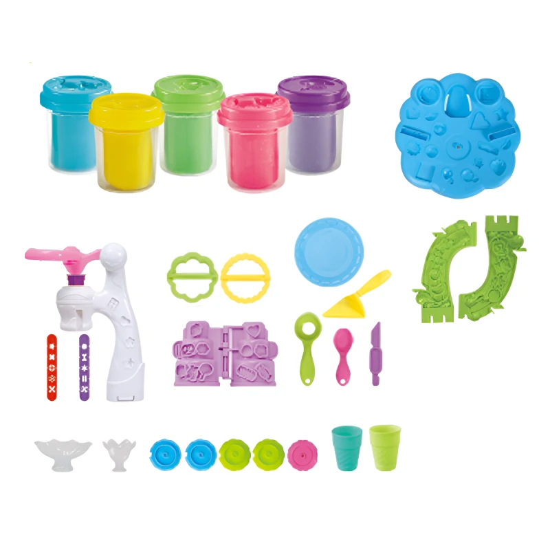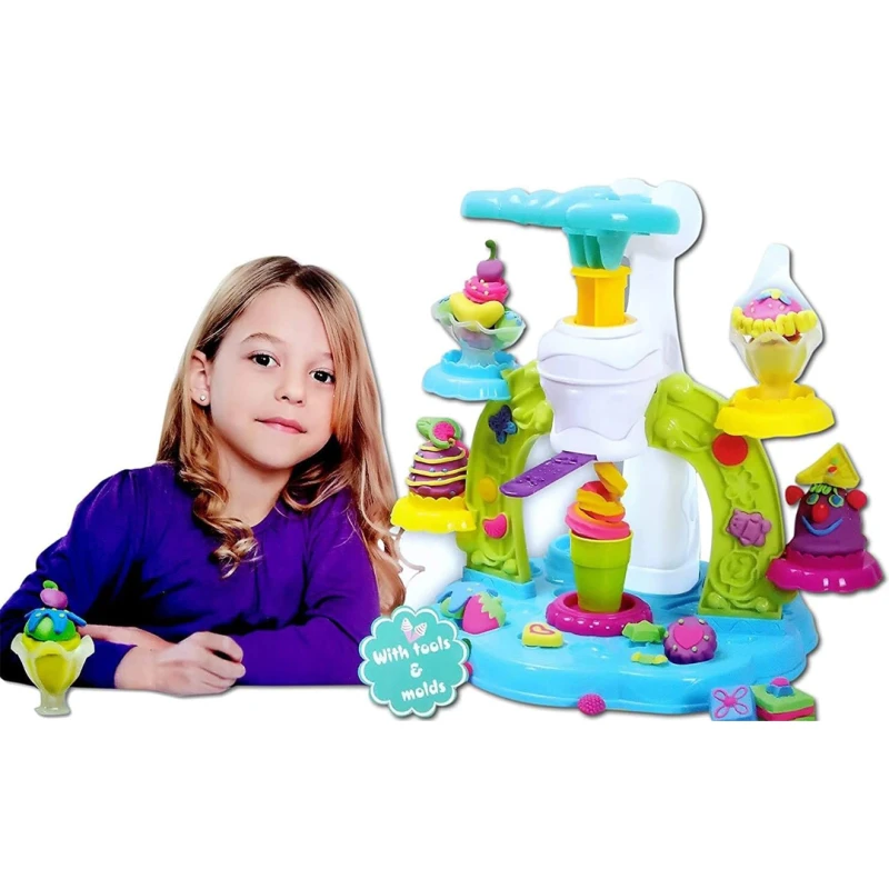 Fun and innovative ice cream dough helps kids create unique ice cream shapes using vibrant colors, a machine, and various molds. Perfect for developing imagination and fine motor skills, made from safe materials and easy to clean.