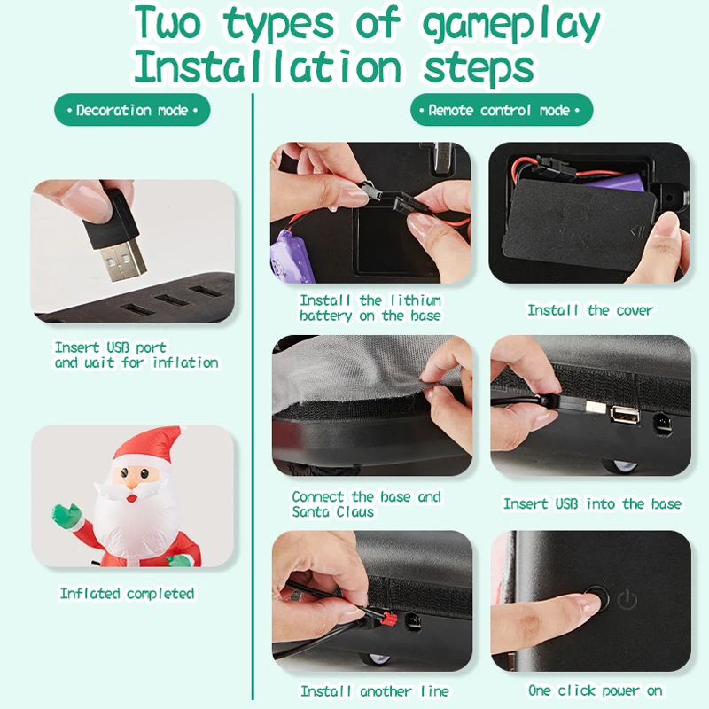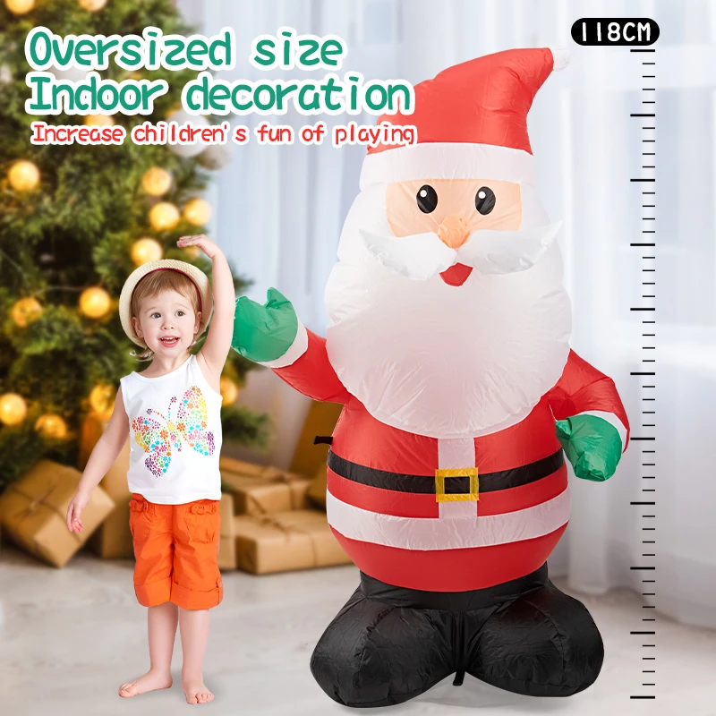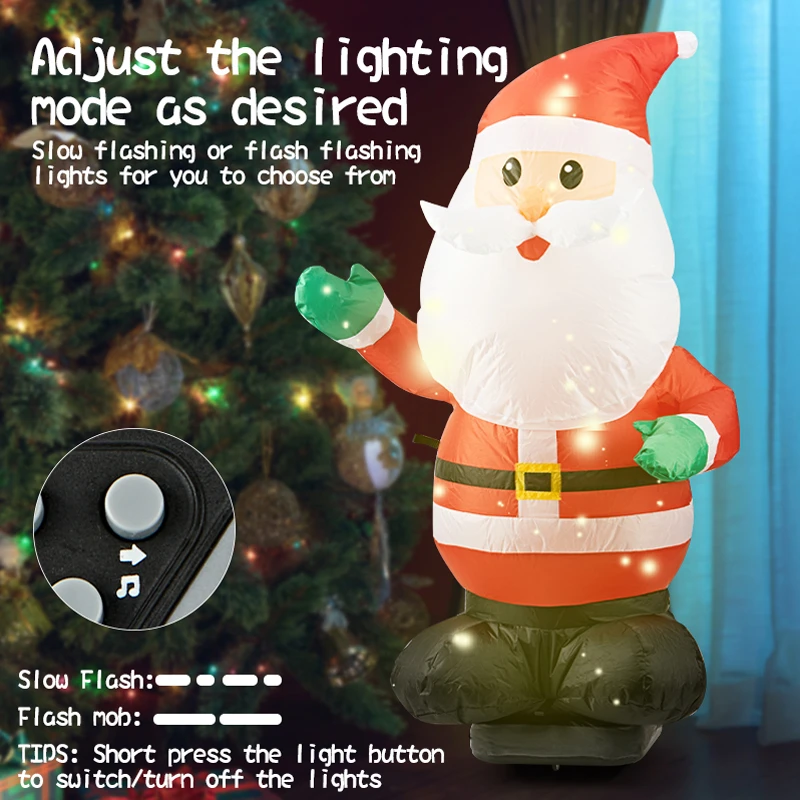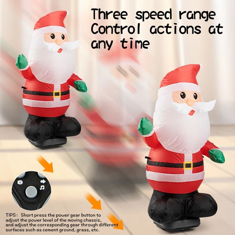 Bring festive holiday joy to your home with this giant inflatable Santa Claus, designed with real walking movement, bright LED lighting, and fun musical features. It comes with remote control functions to adjust speed, lighting, and movement at the touch of a button—perfect for indoor decoration and interactive play, giving children an unforgettable Christmas experience.