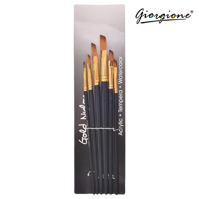 • The Giorgione Artist Paint Brush Set (G-6040A) includes six angular paint brushes in sizes 2, 4, 6, 8, 10, and 12.