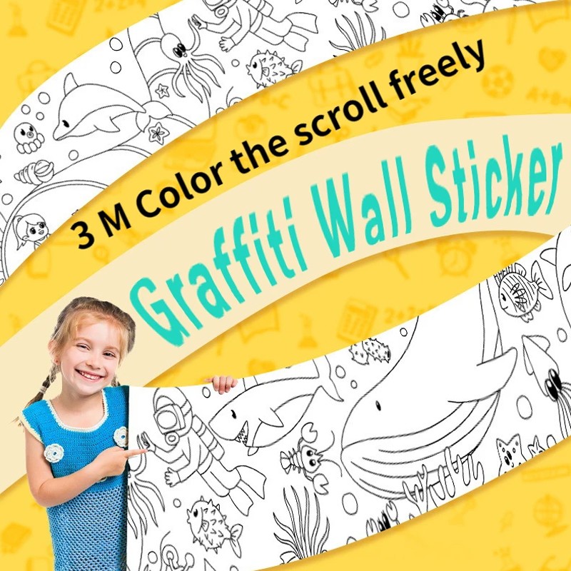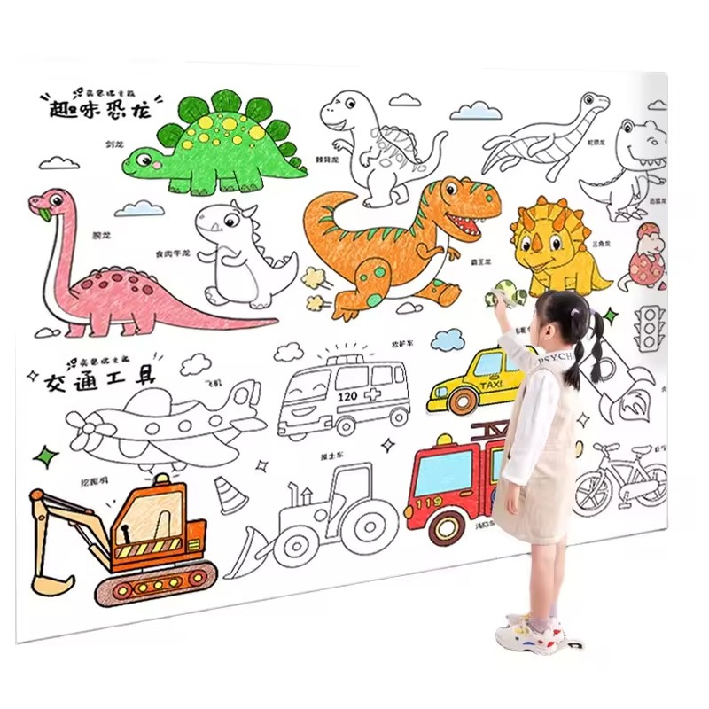 • Large coloring poster for kids, with a sticky design on the back, you can stick it on the floor, wall or tabletop to play with your friends! Adhesive back coloring rolls are easy to remove without damaging walls.