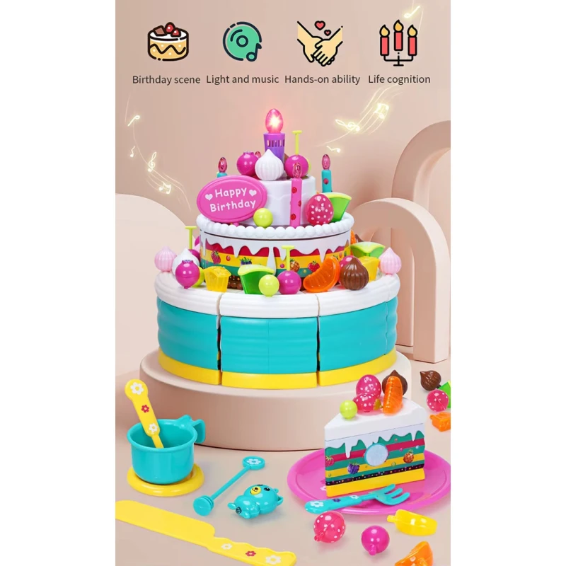 Large Birthday Cake – Sliceable and Decoratable with Lights and Music – Interactive and Educational for Children 3 Years and Up