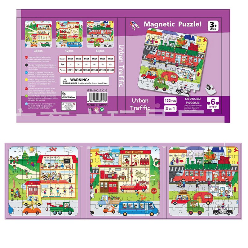 LEVELED Educational Magnetic Puzzles for Kids 133 Pcs Urban Traffic 3 In 1 (23036)
