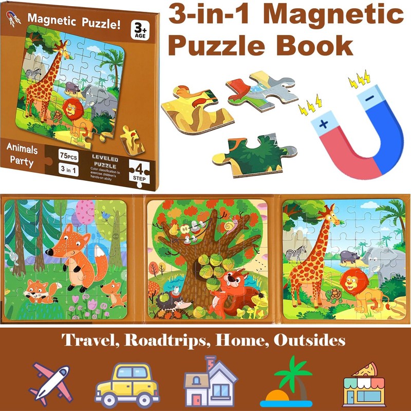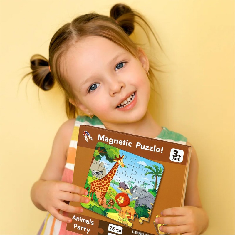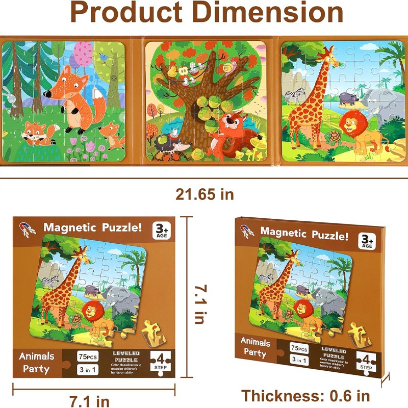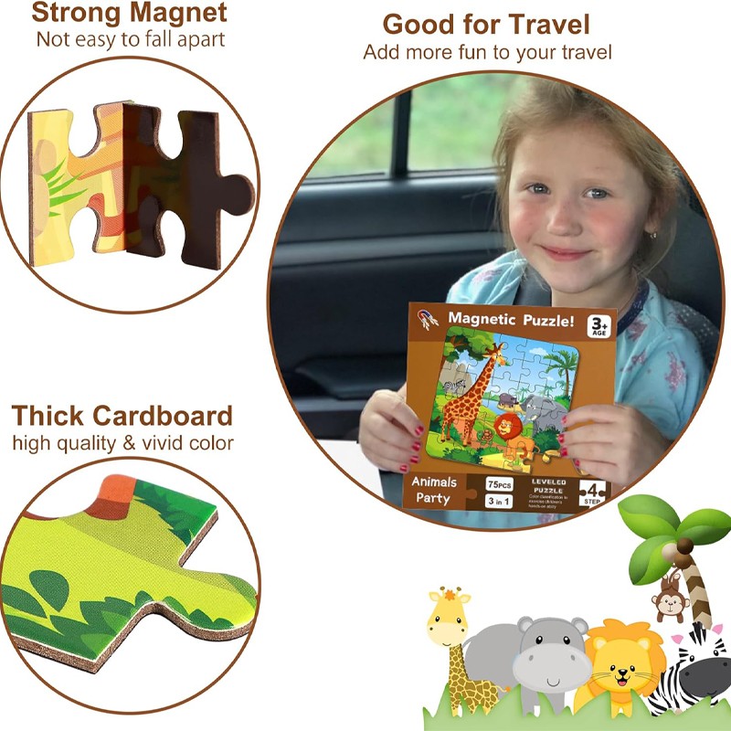 LEVELED Educational Magnetic Puzzles for Kids 75 Pcs Animal Party 3 In 1 (Age 4+)(23034)
