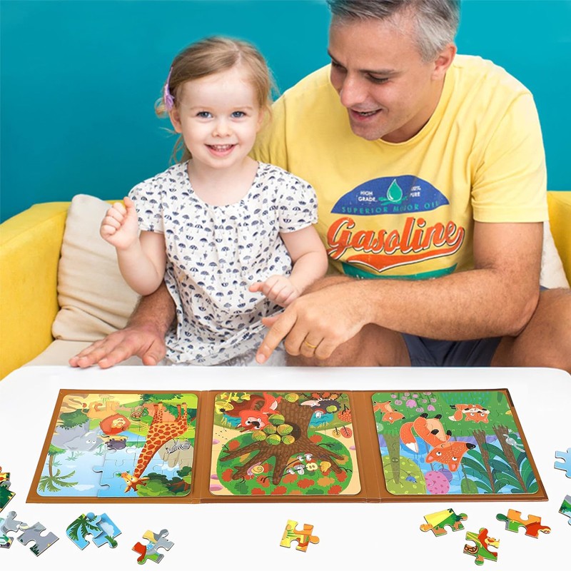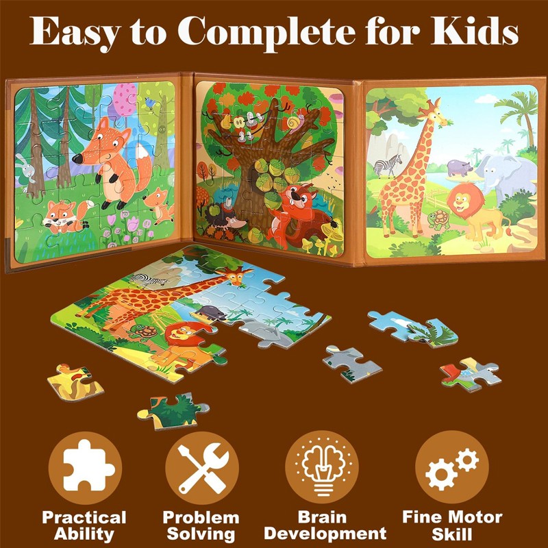• This toddler puzzles set includes 3 sets of magnet puzzles with increasing difficulty level.