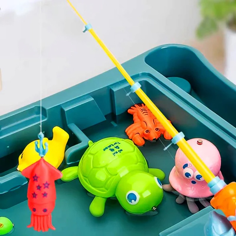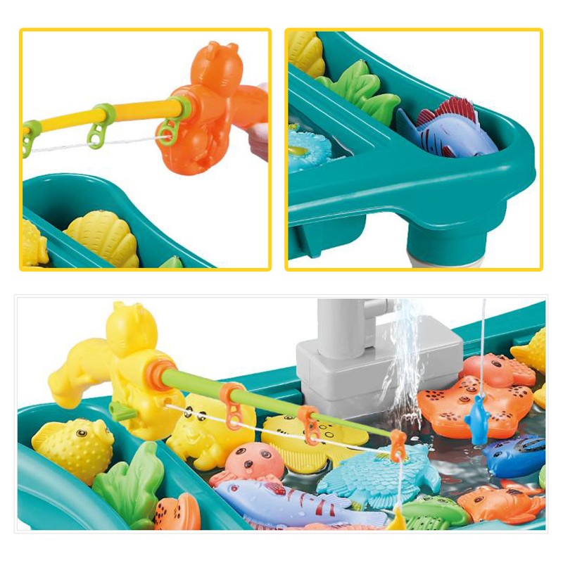 • You just need to open the faucet to get the water and kids can start to play with pole rods and catch the animals from the water.