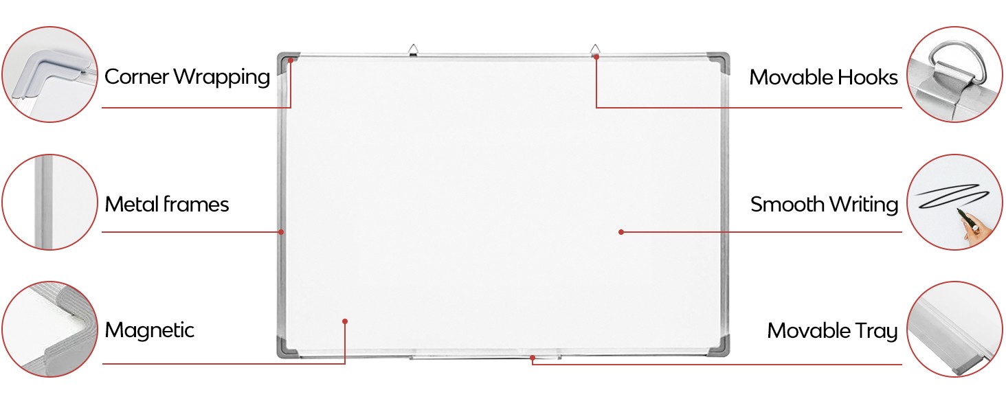 • Movable pen tray provide convenient to place markers of erasers when writing on the white boards.